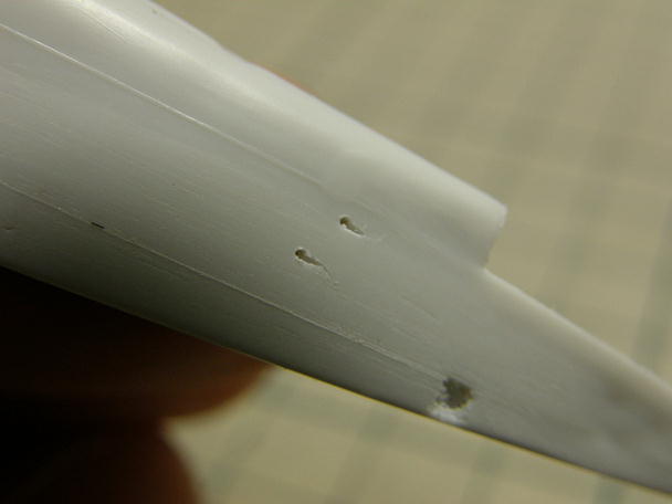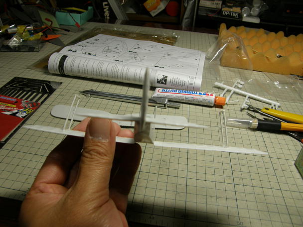 ![]() エレベーター、ラダーのリンケージワイヤーの取り出し口を加工します。 元々は表現されたいない部分であります ので、画像などを参考に加工します。 0.3ミリのピンバイスで縦に穴を開けた後で斜めに穴を広げます。 ![]() ノーズ部分のお面を接着、整形します。 ここも、例に漏れず胴体のラインとは合わないので、整形してつじつま を合わせます。 実機ではこのお面も別パーツなので、段差を削り取り切ってしまわない程度に抑えます。 ![]() 上主翼、下主翼共に機体番号などの要らないモールドが入っています。 コレがあると、シールが貼れません。 ![]() 胴体同様、削り取ってしまいます。 カッターなどで出っ張った部分を粗くそぎ落として、耐水ペーパーで水とぎ をして均します。 ![]() 下主翼を接着します。 胴体とのバランスを考え、胴体側を削って合わせます。 ![]() 左右方向の傾きも調整します。 ![]() 水平尾翼は主翼を基準にアライメントを合わせます。 これはラジコンと同じ作業です。 バルサより固くて小さい 分、こちらの方が面倒です。 ![]() 主翼とのアライメントが揃いました。 ![]() 主翼と合わせると胴体との間に隙間が開きます。 これもお約束ですね。 ![]() パテを盛って、乾燥後に耐水ペーパーで水とぎをして段差を均します。 このパテを買いに、当時とは場所は変わってしまったのですが、子供の頃からある模型屋さんに行きました。 昔はUコンとかも扱っていて、私の初Uコンはこのお店で購入しました。 当時、おばさんが二人でやっていると言う異色なお店でしたが、そのおばさんの内のお一人がまだお店を切り盛り しています。 現在はプラモデル専門のようです。 ![]() 主翼の接合後の隙間も面を合わせた後、パテを盛って修正します。 ![]() 垂直尾翼、主翼支柱などを接着します。 こちらも、主翼や胴体などとのアライメントを確認しつつ接着剤が乾く のを待ちます。 ![]() メインギヤの支柱です。 こちらもバリがたっぷり付いている上に断面が四角くなっていましたので、折らないように 注意して加工します。 ![]() パーツ類が概ね接着し終わりました。 昔の記憶では、プラモデルってパーツの塗装をしてから組み立てるイメージがあったのですが、YouTubeなどの プラモデル製作動画や雑誌の記事を見ると、大方組んでしまってから塗装に入るやり方が一般的のようです。 もっとも、エアブラシが有る事が前提みたいですが、今回のようなザックリとしたキットは先に塗ってしまうと、隙間 だらけのガタガタの完成品が出来てしまう事でしょう。 |