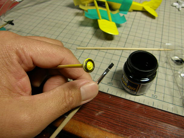 ![]() 簡易ブースを組み立てて、エアブラシで塗装していきます。 色は原色のイエローです。 テストピースとして白いボール紙に吹いて、塗料の濃さとニードル開度を決めます。 ![]() ベースの塗装が終わりました。 この後に色を乗せていきます。 ![]() ステップ部分の塗装です。 こちらもエアブラシを使いますので、不要部に塗装が掛からない様にマスキング を施します。 ![]() ステップのフラットブラック塗装が終わりました。 ![]() プロペラはスピンナー部分はイエロー、ペラ本体はフラットブラック塗装となります。 ![]() プロペラの塗装が終わりました。 画像を検索すると、黒塗装は金属製ペラで木製ペラも存在するようですが、黄色い胴体に合わせる為に 黒を選びました。 ![]() タイヤはホイール部分はイエロー、タイヤはフラットブラック塗装です。 ホイールは胴体と一緒にエアブラシ で塗装がしてあり、ゴム部分は刷毛振りとなります。 ![]() 塗装が終わった車輪です。 ![]() ラジエター部分もフラットブラックで塗装します。 後にシルバーや茶色で墨入れ&ウェザリングを 施します。 ![]() 排気管もフラットブラックで塗っておきます。 仕上げで汚しを入れます。 |