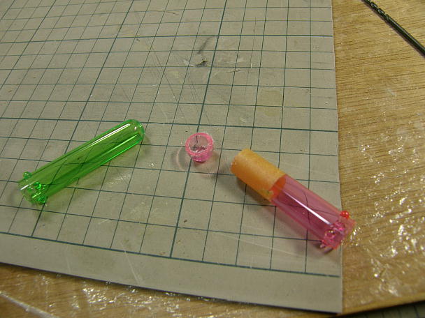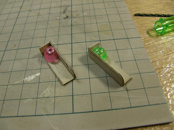 航海灯に丁度良いかと買っておいた、鉛筆キャブの先端を切断して使用します。 ![]() キットの遮光板に合うように削ります。 これはダミーですが、LEDを仕込んでも良いと思います。 ![]() この様に付きます。 ![]() 赤と緑が見えればこちらに直進、赤だけなら右に向かって航行している...といった具合の ようです。 |