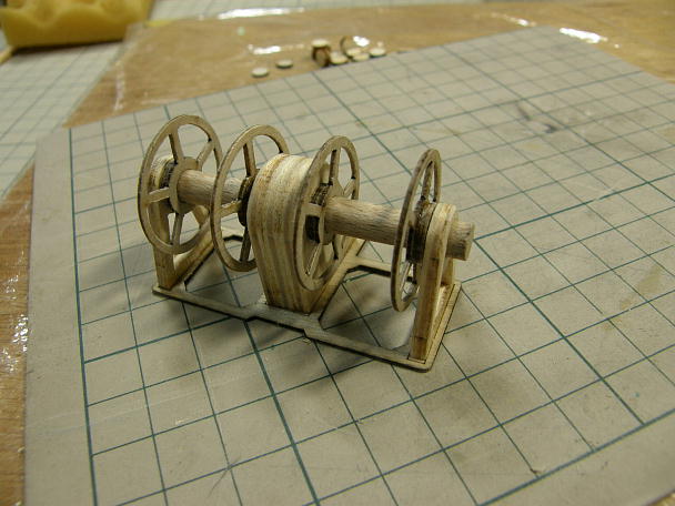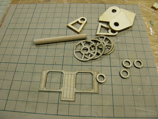 ウインチのパーツです。 ![]() 中央の軸受け部分は3枚の貼り合わせになります。 ![]() バリ取りとスポーク部分を細くするなどのディテールアップをしました。 ![]() 組んだ状態です。 いちおう、回るところは回るように作りました。 手で回転させる事が可能です。 ![]() ドア周りのディテールアップを行います。 ドアの取っ手は真鍮線で、蝶番はプラパイプです。 |