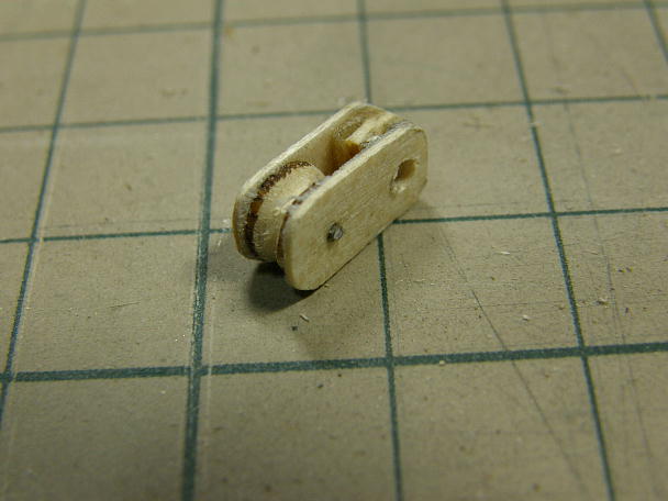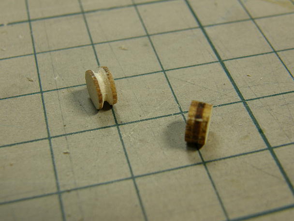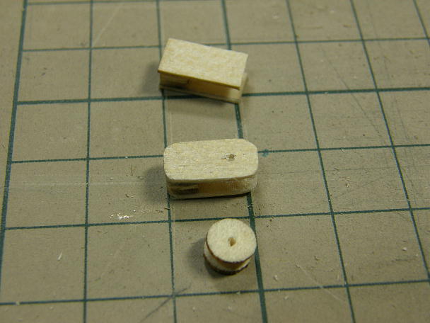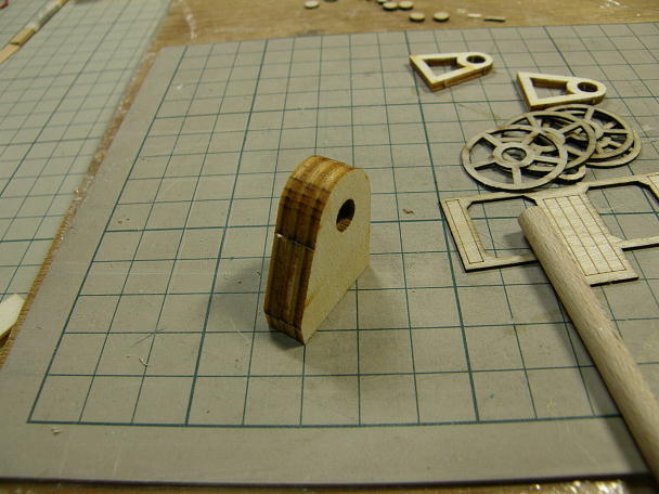 ![]() 丸い打ち抜きがいくつかあり、三角ヤスリで削ったら上手く削れたので、滑車に仕立てる事にします。 ![]() ベニヤで挟めるように... ![]() ピンを打てばモノブロックの完成です。 ![]() クリアラッカーで仕上げます。 |