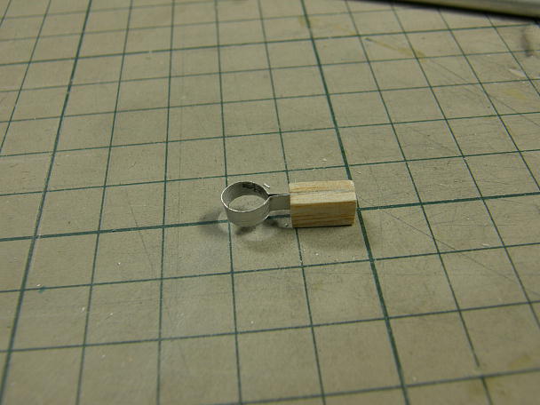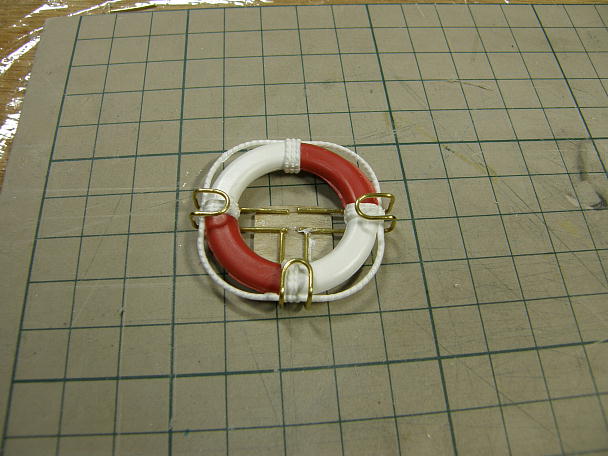 ![]() 排気管の支えは缶ビールの空き缶を利用してホルダーを作ります。 ![]() バルサで挟めば完成です。 ![]() 救命浮き輪はキットにもベニヤ製が付属しますが、既製品を使う事にしました。 単に塗り分けるのが面倒だった だけですが。 ![]() 実艇の救命浮き輪を保持する器具です。 これを参考に、似たような物をでっち上げます。 ![]() 真鍮線を曲げて、浮き輪のホルダー部分を作ります。 ![]() スクラップベニヤに接着して完成です。 ![]() 浮き輪をセットしてみました。 取り外す事もできます。 ![]() マストとブームの接続部分です。 キットの指示では、ピアノ線を角度を決めてへの字に曲げて、差し込むのですが、 この工法ではブームの角度が変わりません。 昔買っておいたピンヒンジを使って、角度を変えられるようにしました。 ![]() キットでは張り線はありませんが、味気ないので追加します。 船体側の張り線受けに小型のヒートンを取り付けた ブロックを作りました。 ![]() そこここに設置します。 |