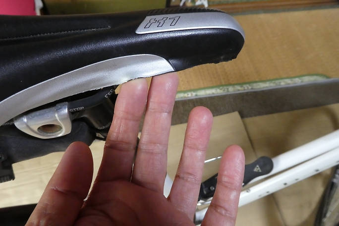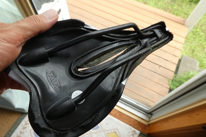 ![]() ![]() ![]() ![]() 2014年、2018年と過去に二回サドルを交換しています。 最初から付いていた物からすれば4つ目のサドル です。 交換しているのは一貫してセライタリアにしていますが、今回同様に表皮が剥がれた物に、ステッチ部分から 裂けた物もありました。 |