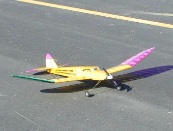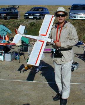 | 今日も色々な機体が集まりました。 皆、一工夫も二工夫もされています。 SIGさんのコンパチ号です。 上の画像と下の画像は同一の機体で、主翼を付け替えると低翼機にも高翼機にも コンパーチブル可能...でコンパチ号です。 ねこみんさんのミニスペース号です。 これは、ムサシノの絶版機ですが、図面を元にフルスクラッチにて製作されたそうです。 540クラス27ターンに6セルでダイレクトにペラを回していました。 佐々木さんの自作オールドタイマー機です。 アメリカ製キットの拡大板です。 大きさもあって、とても味のある飛び方をします。 木村も一機欲しくなりました。 |