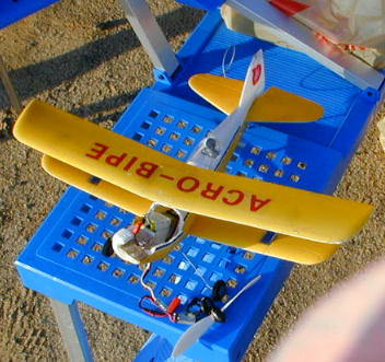 今回の大破賞。 TORIさんのアクロ−バイブ号。 混信かメカトラブルか、残念なことになってしまいました。 |