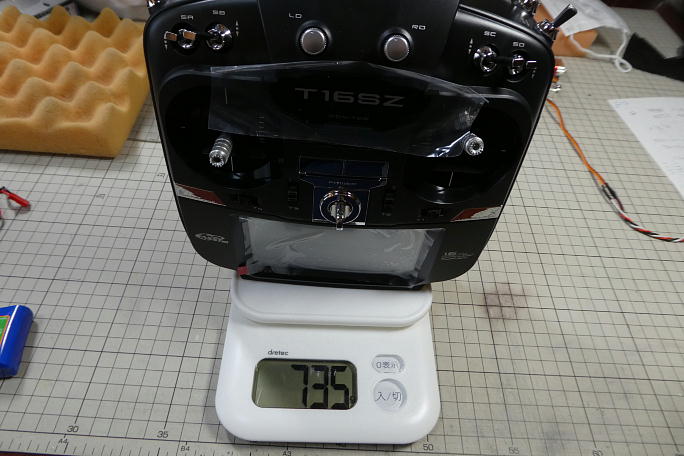 ![]() 1800mAHのニッケル水素バッテリーが付属します。 重さは約160グラムあります。 ![]() 先に導入している18SZとも共用出来るのと、軽量化にもなるので、送信機と一緒に2060mAHのLiFeを購入 しました。 こちらは単体の重量は105グラムです。 ![]() 送信機単体の重量は735グラムです。 ガワの関係か、18SZより100グラムほど軽いです。 ![]() バッテリーと合わせて840グラムになります。 8FGの770グラムには及びませんが、軽い部類だと思います。 |